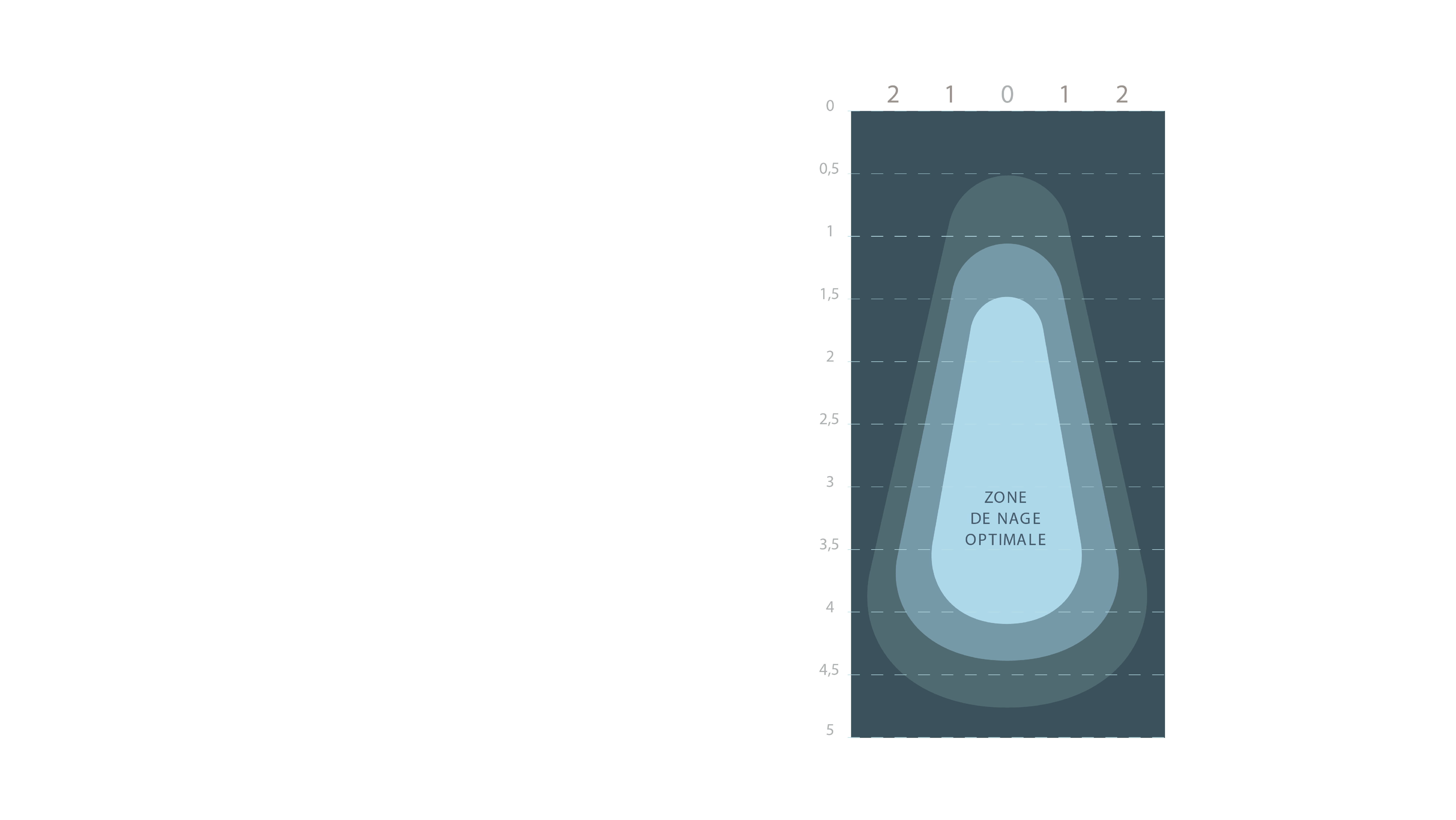Profitez d'un courant puissant de 390 m³/h, homogène et adapté à tous les niveaux, du nageur débutant à l'athlète professionnel.